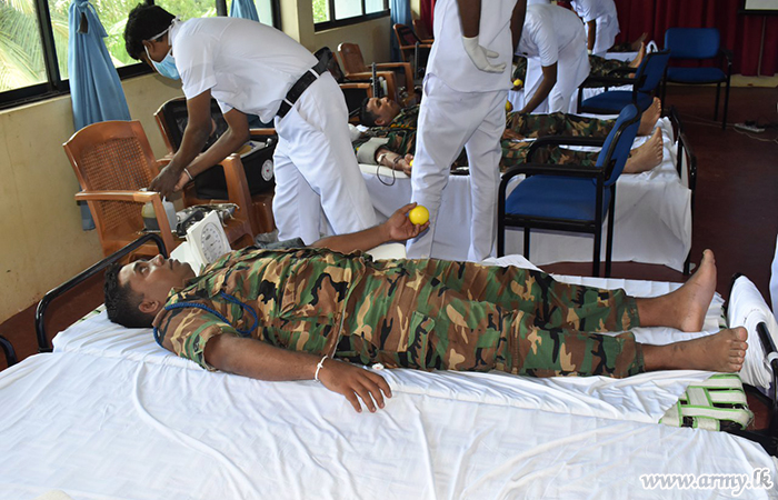 Over 65 members of Army, including Officers serving the 57 Division under command to the Security Force HQ -Mullaittivu considering the urgent need for blood for patients at Kilinochchi Hospital came forward to donate their blood during an arrangement made by Mas Intimates Pvt Limited in Kilinochchi.