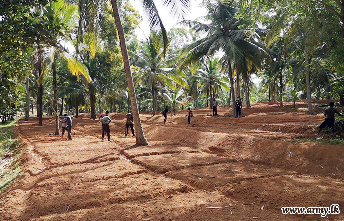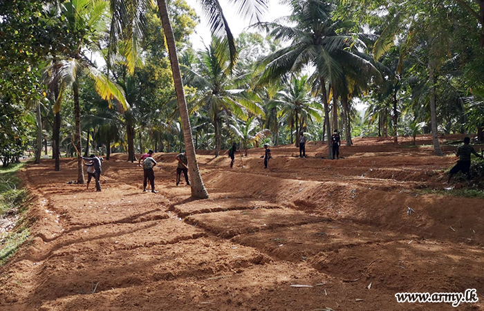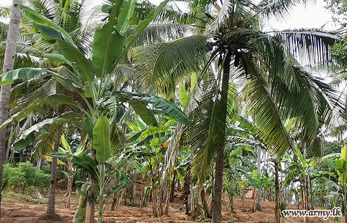 The cultivation, comprised of pumpkin, drum sticks, dambala, radish, lime, maize, ginger, etc covers 20 acres in extent and more than 50 troops are engaged in the project. Those crops in the compound are to be added to the diet of VIR soldiers as fresh rations and the excess will be provided to the troops at reasonable price, to be taken to their families.