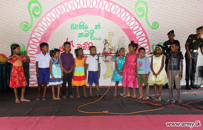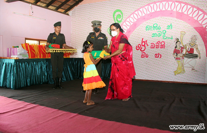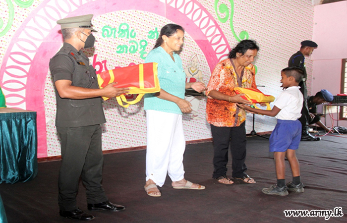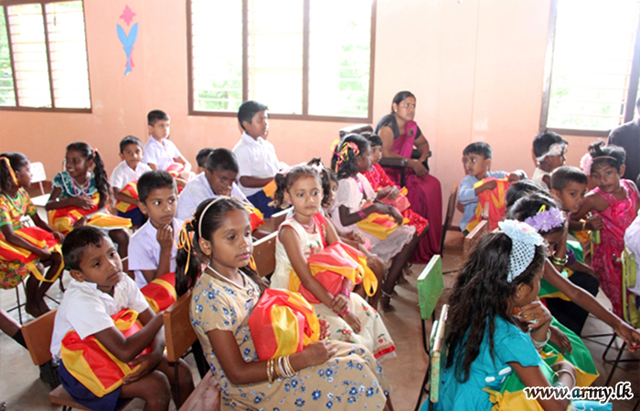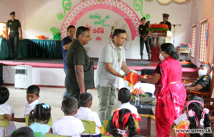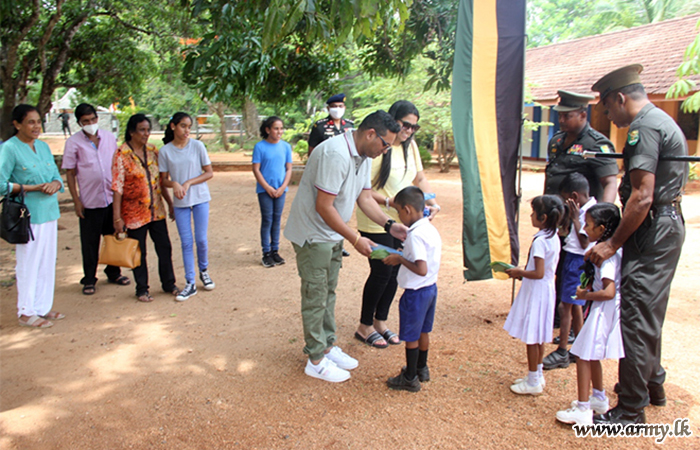 Those beneficiaries in Grade 1-5, very much affected by economic hardships received those gift parcels from the 56 Division’s General Officer Commanding, Major General Saman Liyanage as the Chief Guest. Colonel Sanjaya Perera, Commander, 563 Brigade and the Commanding Officer of 7 Sri Lanka Sinha Regiment troops facilitated the distribution of those incentives in close coordination with the Principal, teachers and Zonal Education authorities.