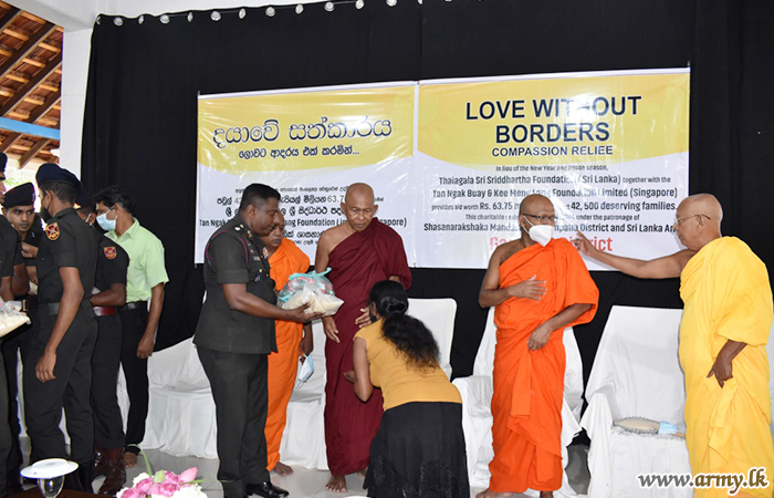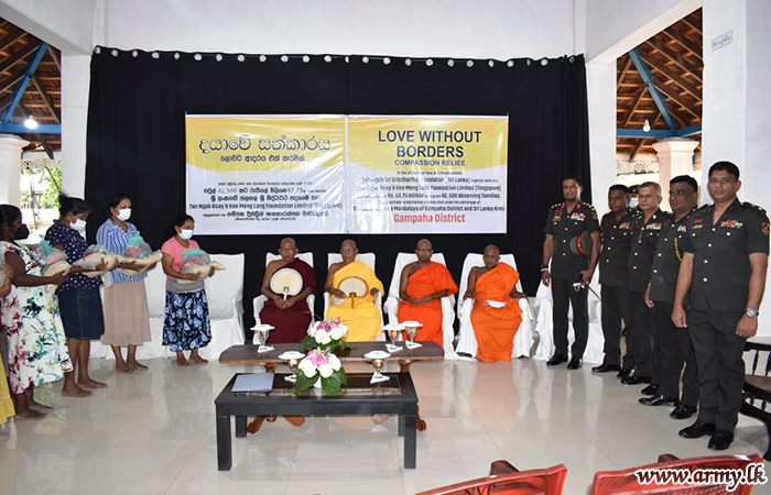 With the support of 141 Brigade troops of the 14 Division under the Security Force HQ-West, Talagala Sri Siddhartha Foundation of Ven Talagala Sumanaratana Nayake Thero, together with donors in Tan Nagak & Kee Meng Leng Foundation Limited (Singapore) distributed one more stock of dry ration packs among 1500 low-income group families in Weliweriya, Delgoda, Nittambuwa and Kandalama areas in the Gampaha District where many poverty-stricken civilians reside.