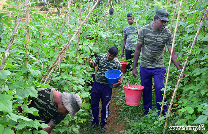 A harvest of beans, grown by the troops at the SFHQ-Central using organic fertilizer was reaped and distributed at subsidized price among troops on Monday (27).