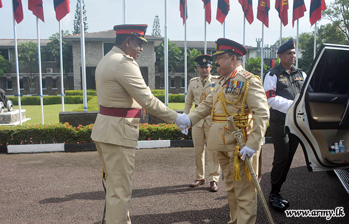 Subsequently, the day's Chief Guest was honoured in a ceremonial Guard of Honour parade. Major General Chandana Wijayasundara symbolized the acceptance of the new office by placing his signature for an official document at his new office.