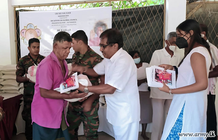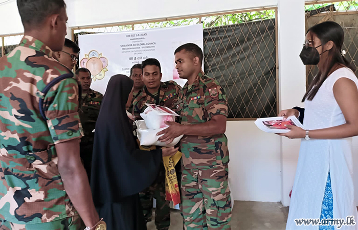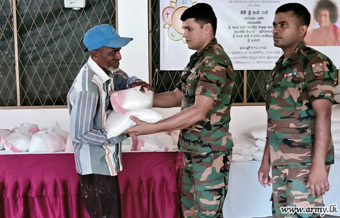 12 Sri Lanka Engineer Corps (SLE) troops of the 612 Brigade of the 61 Division under the Security Force HQ-West with sponsorship support, lent by ‘Sri Sathya Sai’ Foundation gave away a few more than 100 dry ration packs to low-income group families, resident in the general area of Matugama after inviting them to Matugama Sri Sarananda Pirivena in Welipenna on Tuesday (28).