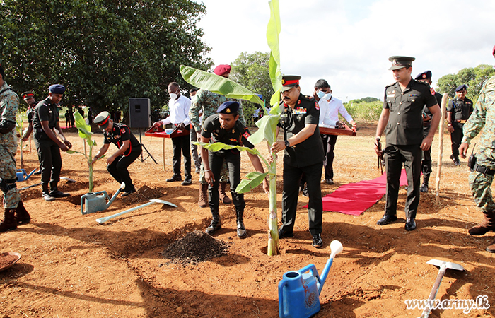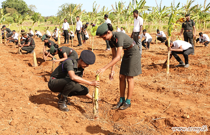 By planting different varieties of banana, vegetables and sowing paddy in Army-managed farms in the Jaffna peninsula, troops on the directions of the Commander Security Forces Jaffna, Major General Chandana Wijayasundara began throwing their weight behind the Army Food Security Programme on Friday (01).