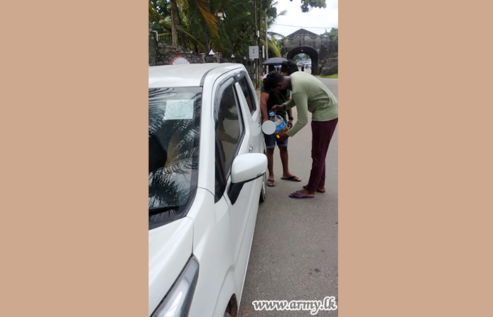 Alert 3 (V) Gemunu Watch troops on duty near the main entrance to their HQ at Matara generously assisted a stranded foreigner to move to the nearest fuel station after his vehicle suddenly stopped due to lack of enough fuel this morning (7).