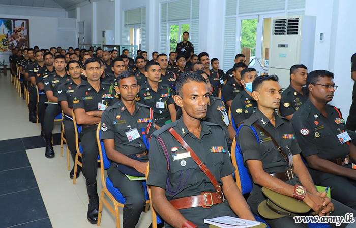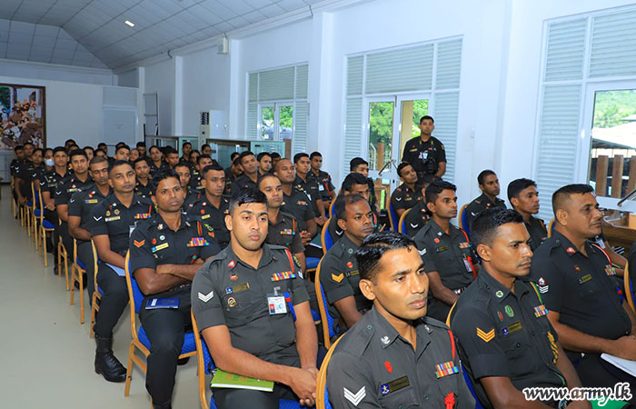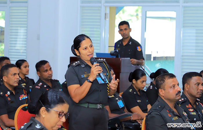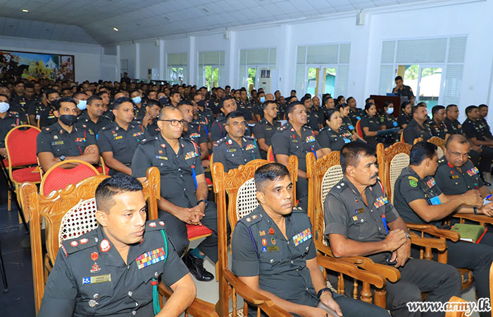 Major General Sujeewa Senarath Yapa, Commandant, Sri Lanka Amy Volunteer Force (SLAVF) conducted a lecture pertaining to the SLAVF's 'Way Forward' and made a comprehensive review of his 21 working days in the SLAVF after he took over duties on Wednesday (6) at the SLAVF Headquarters' Multi-Functional Hall.