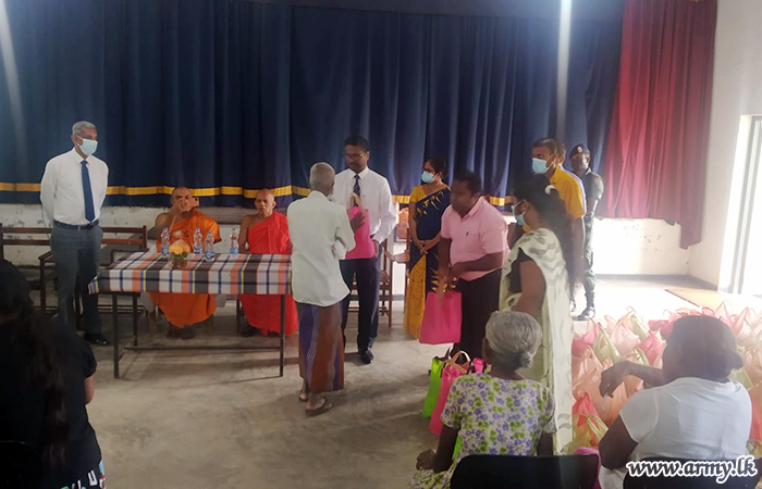 One more initiative of the Army in close collaboration with the Thalagala Sri Siddhartha Foundation of Ven. Thalagala Sri Sumanaratana Nayake Thero and Tan Ngak Buay & Kee Meng Lang Foundation of Singapore distributed a total of 150 dry ration packs among the poor, resident in the general area of Habaraduwa on Thursday (7).