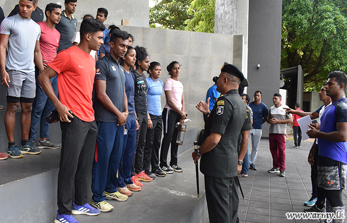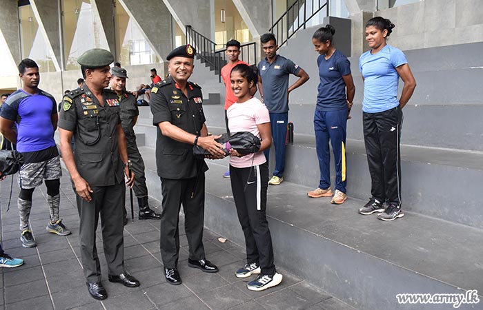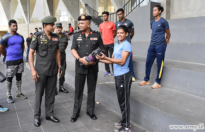 The Chairman of the Army Athletics Committee, Major General Sujeewa Senarath Yapa, Commandant, Sri Lanka Army Volunteer Force (SLAVF) made a visit to the Torrington Grounds on Friday (8) and inspected the training sessions underway for Army athletes, representing the Sri Lanka Athletics Pool.