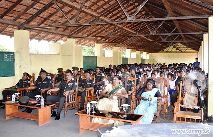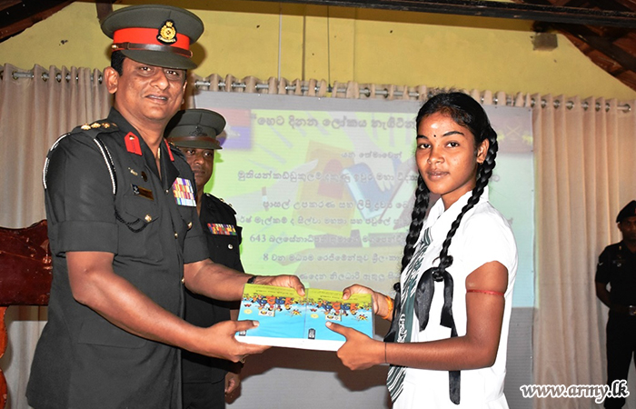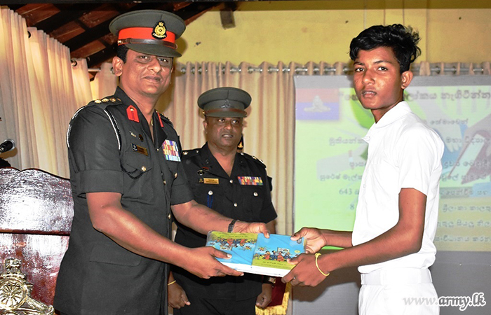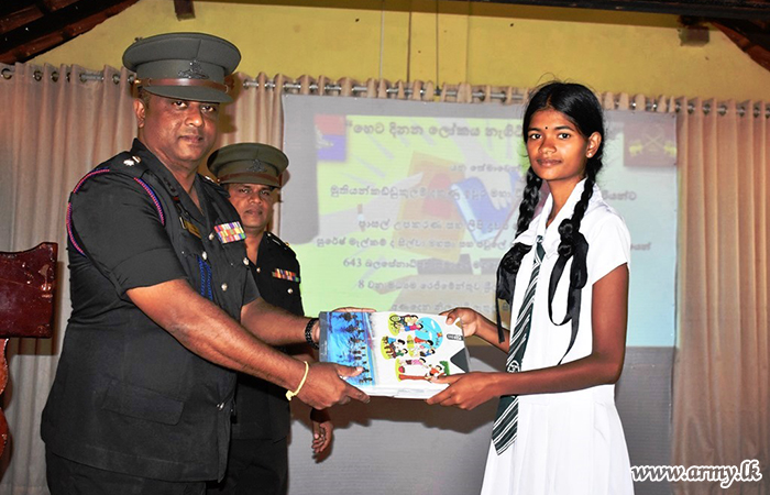Mr. Suren Malcum De Silva at the request of Colonel Rajitha Premathilaka, the 643 Brigade Commander offered his generosity and this civil-military cooperation project was closely supervised by the commanding officer of 8 SLA troops who screened the deserving students for the receipt with the help of school authorities.