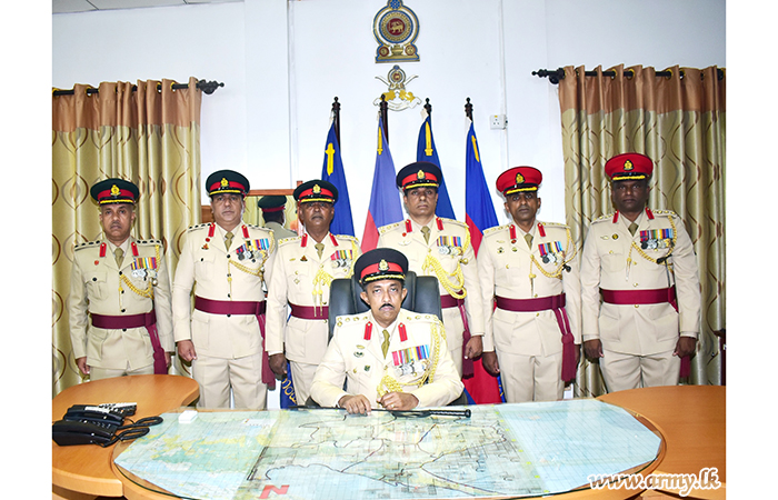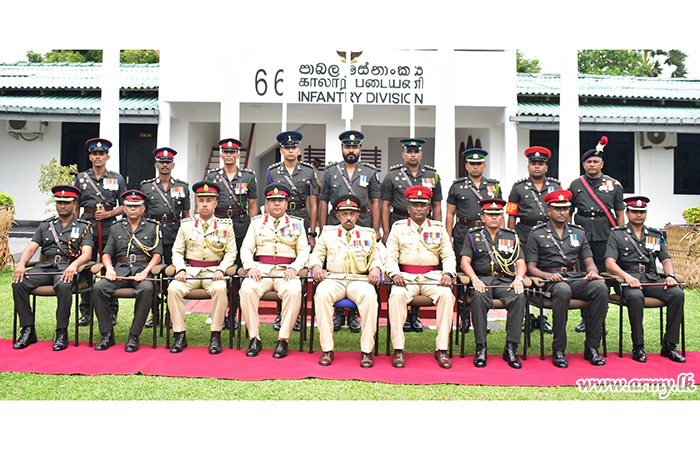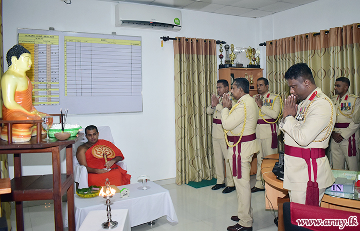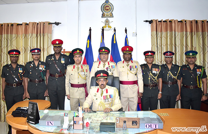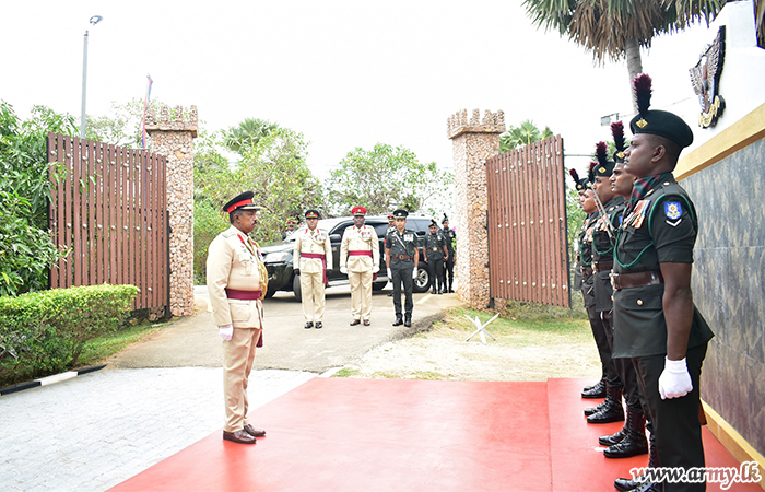 The newly-appointed General Officer Commanding of the 66 Division was warmly welcomed by Staff Officers and honoured in a Guard Turnout, presented by 5 (V) Mechanized Infantry Regiment troops as he entered the premises. Afterwards, he was accompanied to his office and the new GOC placed his signature in an official document to mark the assumption of his duties amidst 'Seth Pirith' chanting of the Maha Sangha.