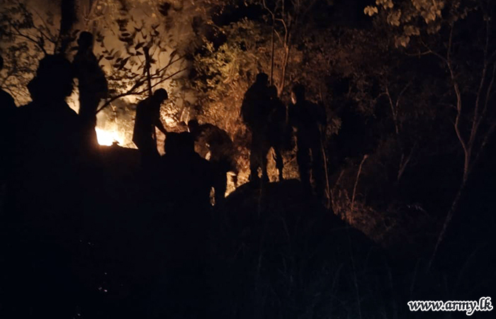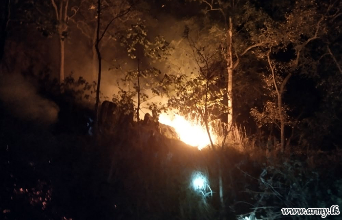121 Brigade troops serving the Wellawaya area promptly responded and brought a fast-spreading bushfire under control in the general area of Devagiri Mountain range in Mahagoda Yaya, Wellawaya on Saturday (16).
