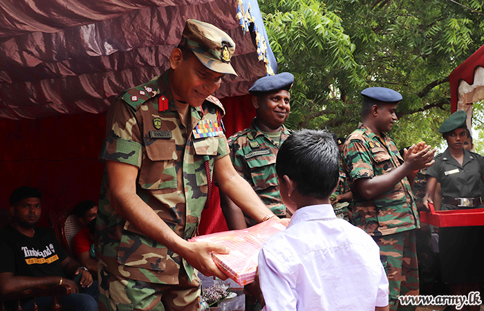 A total of 37 Thilluwar Primary School students and Mankulam Shanmugarathnam Primary School in Mullaittivu, thanks to the initiatives taken by 9 Vijayabahu Infantry Regiment (VIR) troops under command to the 573 Brigade of the 57 Division HQ were the recipients of school accessories and two water filters on Saturday (16).