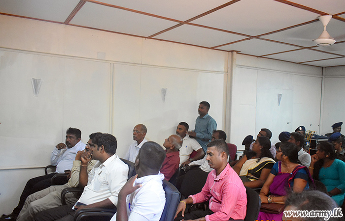Intent on finding ground realities and updates on the difficulties, being faced by civilians in respective areas and exploring possibilities for extending support to them, 6 Gemunu Watch (GW) troops of the 681 Brigade in Udayarkattu under the 68 Division of the Security Force Headquarters-Mullaittivu invited Grama Niladhari (officials) of Udayarkattu-South and Therawil in the Wallipuram Grama Seva Divisions for a discussion on Friday (15).