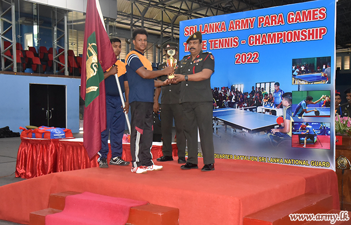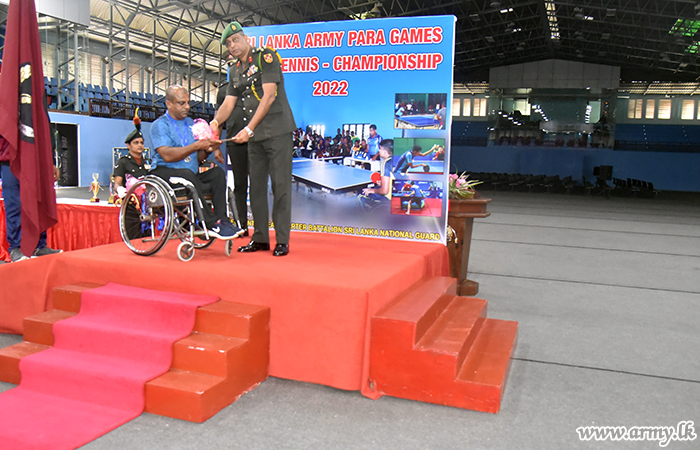 The Table Tennis tournament of the Army Para-Games got underway at Panagoda Army Indoor Gymnasium on 12 July 2022, organized by the HQ Battalion of the Sri Lanka National Guard (SLNG).