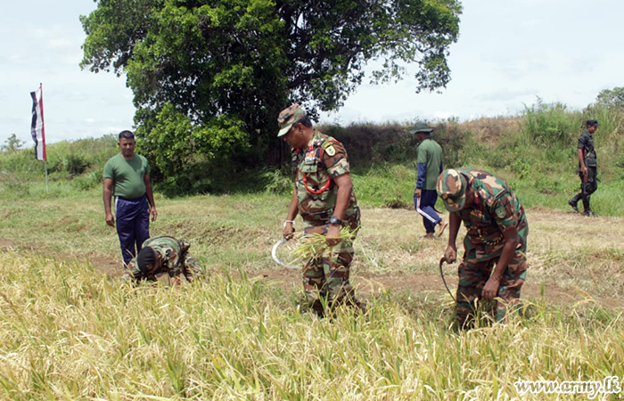 Commander, 223 Brigade, Commanding Officer of 6 Sri Lanka Armoured Corps, Civil Affairs Officer of the 223 Brigade and Officers and Other Ranks of 6 SLAC participated in the harvesting ceremony.