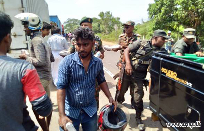 Giving a relief to the people undergoing economic hardships in the general area of Kanagaraykulam in Vavuniya, 561 Brigade troops under the 56 Division of the Security Force HQ-Wanni offered more than 400 free lunch packets to civilians after taking them to each doorstep on 13 July 2022 as one of the 561 Brigade's community projects.