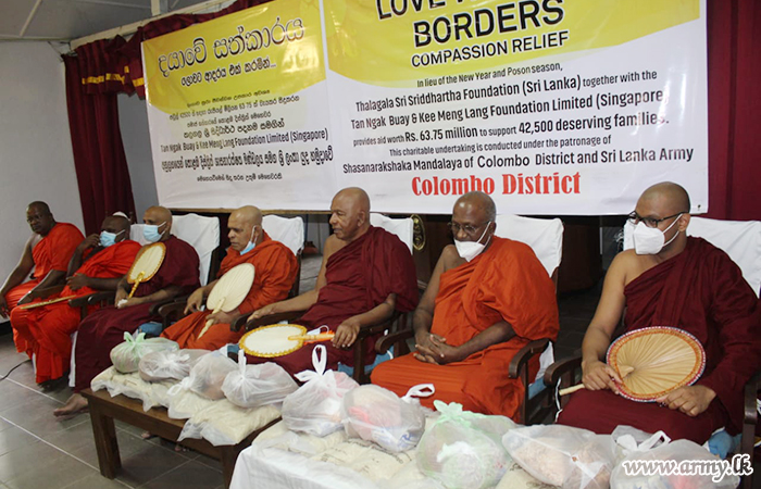 Ven Talagala Sri Sumanaratana Nayake Thero of Thalagala Sri Siddhartha Foundation in collaboration with Singapore’s ‘Tan Nagak Buay and Kee Meng Lang Foundation’ who has been actively engaged in a massive relief supply project of dry rations lent its assistance to civilians, resident in the 144 Brigade area of the 14 Division under the Security Force Headquarters - West by donating 204 more dry ration packs for distribution under the Phase-3 of the project.