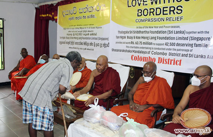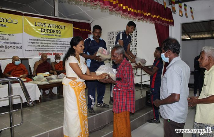 Accordingly, a total of 42,500 dry ration packs for needy families in the Western province alone have been so far distributed including those 204 packs through the Army. Those 204 packs went to needy residents in Pegiriwatta, Embuldeniya areas, served by 144 Brigade troops as per directions of Major General Deepal Pussella, Commander, SF-West.