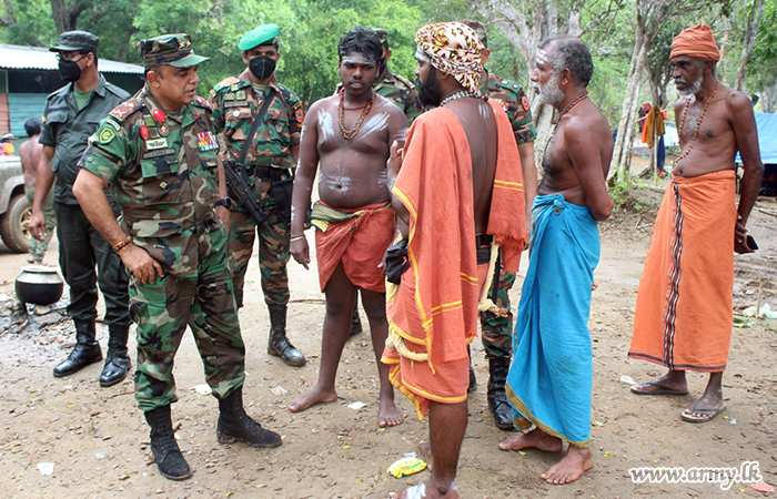 Those devotees are provided drinking water, cooked foods, medicine and temporary shelters by the troops in close collaboration with state agencies. Guidelines given by the Commander, Security Forces, Central, Major General Samantha Silva and the close supervision of Major General Lanka Amarapala, General Officer Commanding, 12 Division have enabled the troops to provide those facilities.