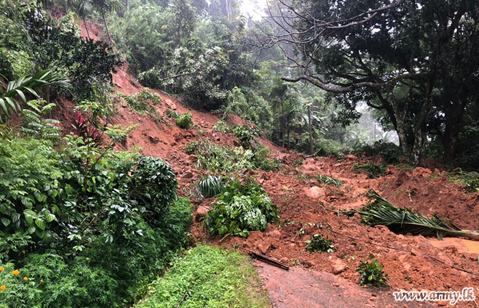 Troops of the 5 Vijayabahu Infantry Regiment of the 581 Brigade under the 58 Division under command to 1 Corps this evening (1) rose to the occasion and rescued a total of about 120 civilians trapped due to a landslide that occurred along the road patch between Ranwanthenna - Makandura in the general area of Thawalamthenna near Kotmale New Town.