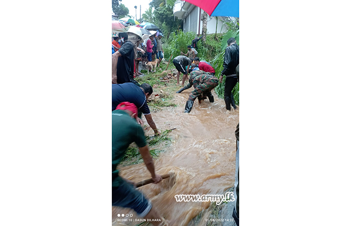 Similarly, 1 Sri Lanka Army Rifle Corps troops of the 111 Brigade of the 11 Division under the Security Force HQ- Central assisted Disaster Management Centre and other civil authorities to relocate about 50 families, displaced due to the overflow of Mahaweli river water in the general area of Kithulgoda.