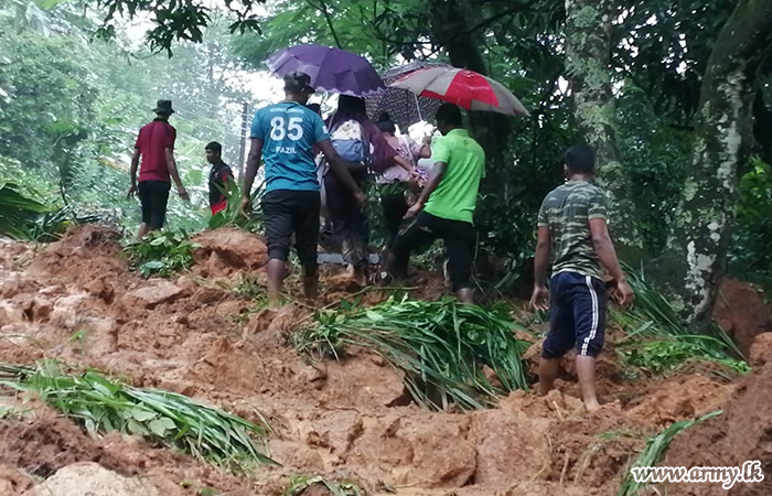 Troops of the 5 Vijayabahu Infantry Regiment (VIR) under the command to the 581 Brigade under the 58 Division of 1 Corps rescued 16 civilians, trapped and stranded in earthslips in the general area of Welgampola, Nawalapitiya last evening (1) after torrential rains caused soil erosion. (See separate story elsewhere in Home Page)