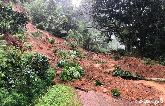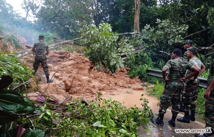 In the meantime, 19 Sri Lanka National Guard (SLNG) troops under command to the 111 Brigade of the 11 Division of the Security Force HQ - Central on Wednesday (3) removed earth mounds, boulders and trees that had fallen on to the Gampola - Ginigathhena main road near Bagathuluwa area interrupting vehicular traffic.