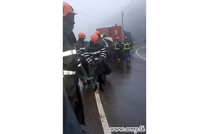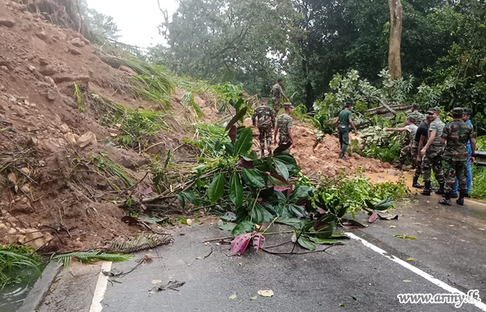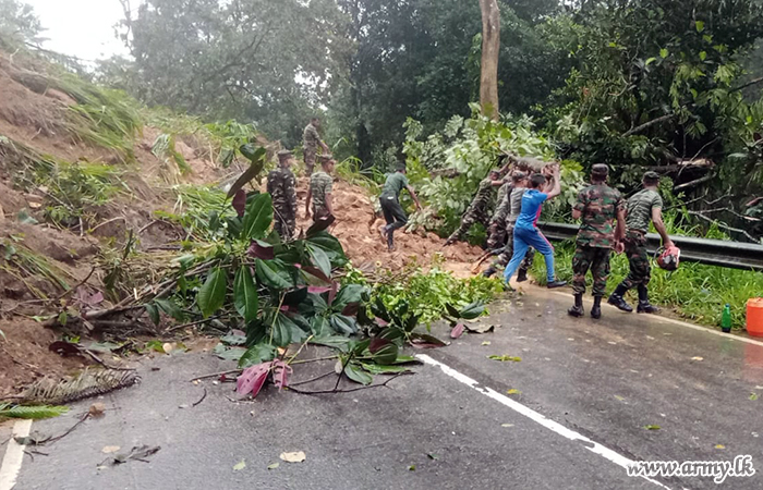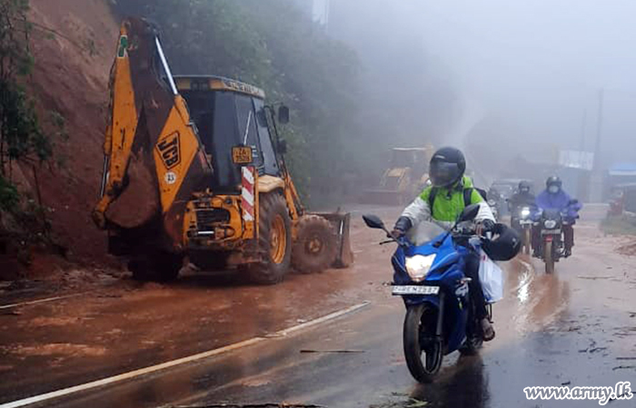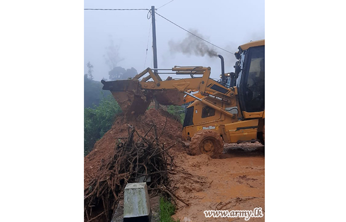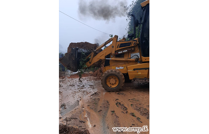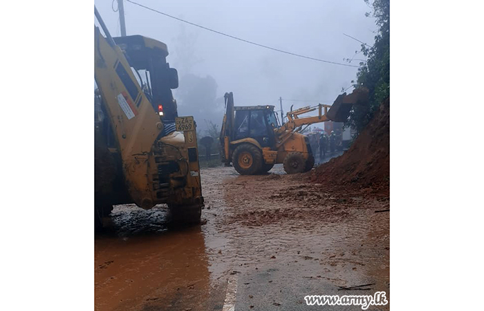 Troops who acted quickly joined hands with workers at Nuwara Eliya Road Development Authority, removed earth mounds and restored the road transport operations within few hours.