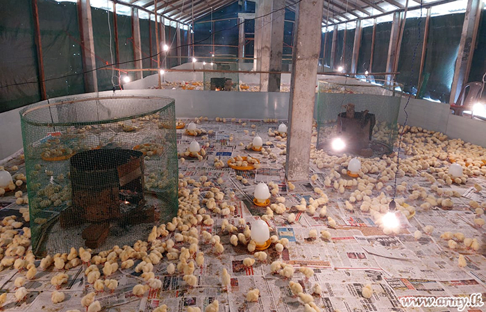 LG Farm Private Ltd, a well-known poultry farm company in Minneriya has provided all the chicks, consultations and all other instructional assistance for this initial project in a move to support the Army initiative. The number of chicks is to be increased to 8,000 under the second phase after the first stage was proved a success.