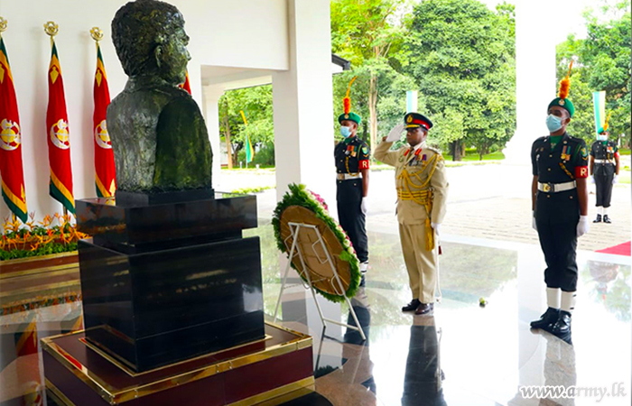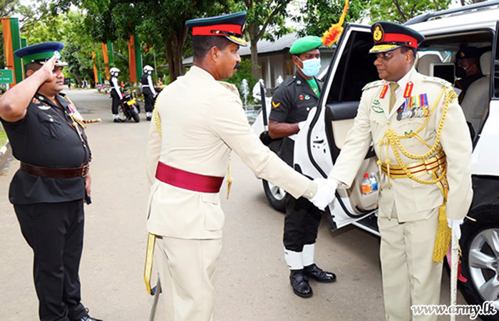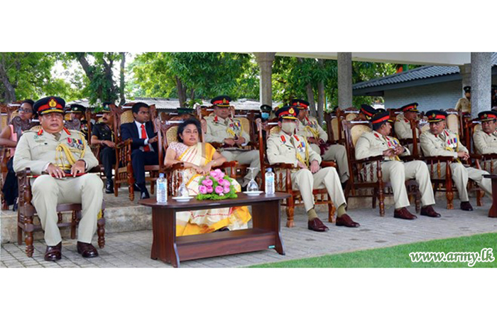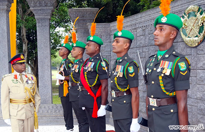 The day’s ceremony commenced with the customary Guard Turnout presented to the day's protagonist. It followed offering of floral tributes to the architect of the regiment, late Major General Wijaya Wimalaratne's statue. A colourful farewell Guard of Honour parade that followed in the parade ground afterwards saluted the retiring Senior Officer. He took the farewell salute at the Home of Gajaba on the eve of his retirement from the special dais at the parade ground.