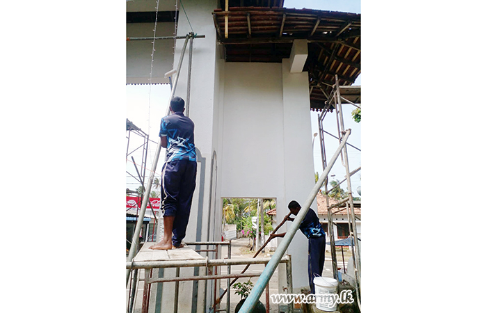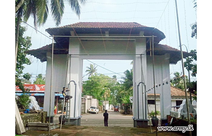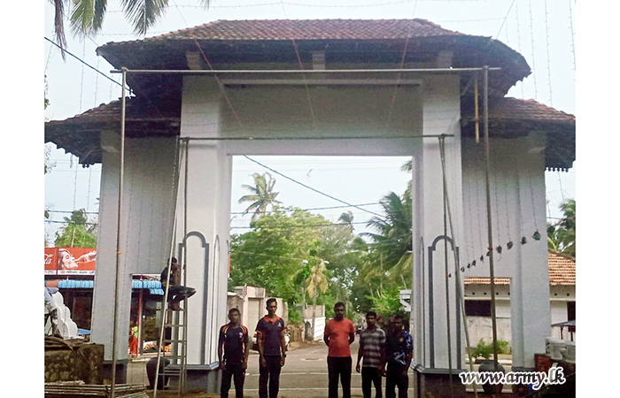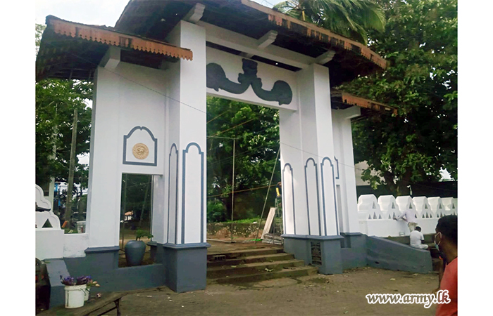 Troops of the 613 Brigade of the 61 Division at the request of the Basnayeka Nilame at Devinuwara Sri Vishnu Upulwan Dewalaya completely repainted the main entrance (Wahalkada) on account of the annual Esela Festival.
