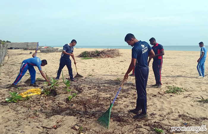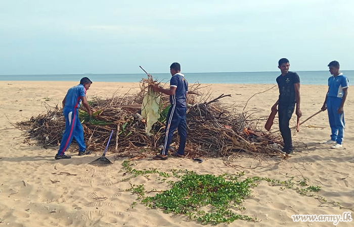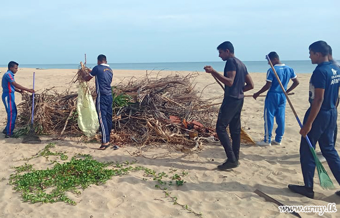 Meanwhile, 6 Sri Lanka National Guard troops under command of the 681 Brigade of the 68 Division under the Security Force HQ Mullaittivu joined hands with civil workers to clean the coastal belt in Wallai Madam area on Tuesday (9).