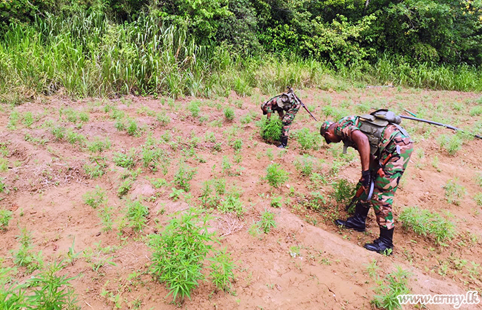 On a tip-off received by the General Officer Commanding, 12 Division, Major General Lanka Amarapala, the raid was conducted on the cultivation in participation with Policemen. All captured Cannabis saplings were handed over to the Wellawaya Police Station for further investigations.
