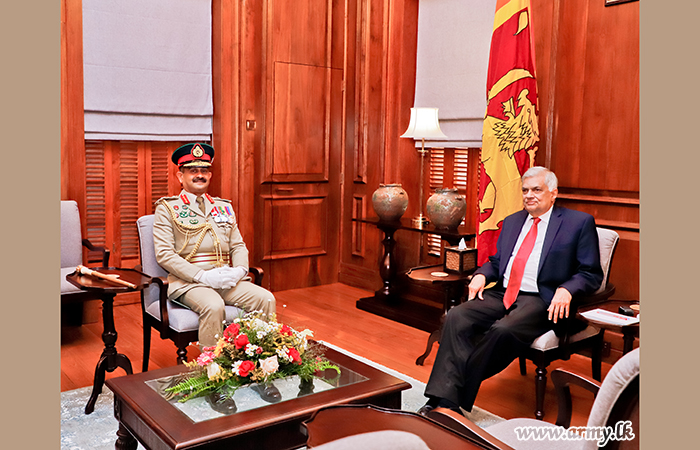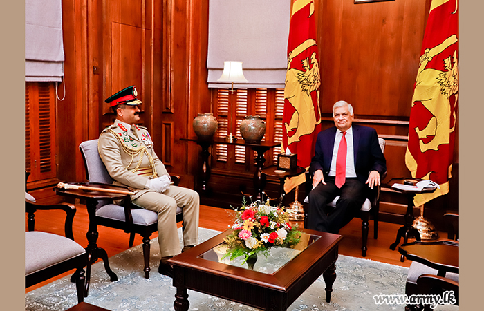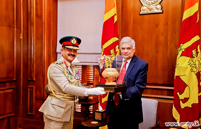 Attaching due recognition and prominence to military formalities, Lieutenant General Vikum Liyanage, Commander of the Army this morning (19) made his first formal courtesy call on President His Excellency Ranil Wickremesinghe who is also the Commander-in-Chief of the Armed Forces at the Presidential Secretariat.