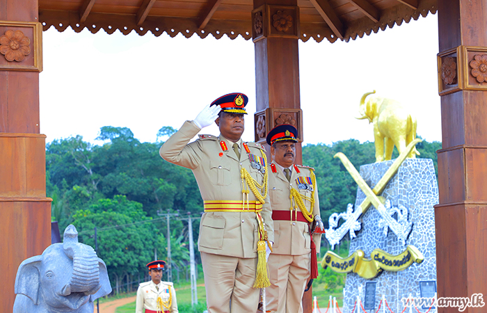 A Guard Turnout plus a parade saluted the new Deputy Commandant on arrival at the (SLAVF) HQ. Afterwards, amidst invocation of ‘Seth Pirith’ by Maha Sangha, Major General Thusitha Silva placed his signature for an official document, symbolizing the formal acceptance of his new appointment.