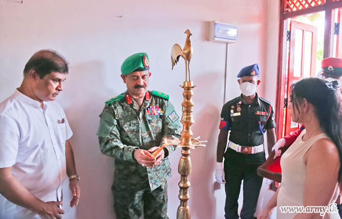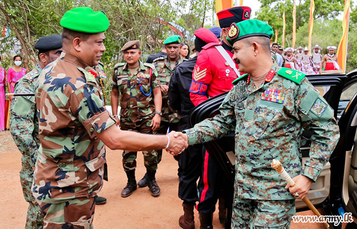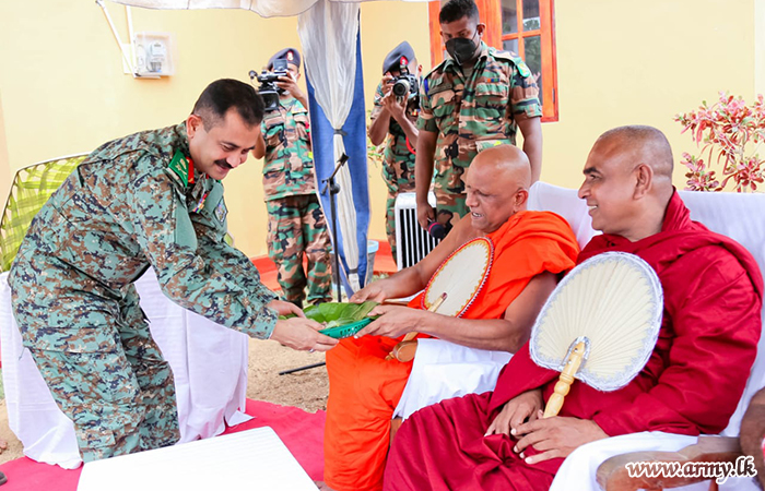 Major General Champaka Ranasinghe, Commander, Security Force Headquarters-Wanni, Major General Sujeewa Hettiarachchi, General Officer Commanding, 62 Division, Major General Nishshyanka Eriyagama, General Officer Commanding, 21 Division, Brigadier Anil Peiris, Deputy Commandant, Defence Services Command and Staff College, Senior Officers, family members, relatives and troops who contributed to the construction participated in the warming ceremony.