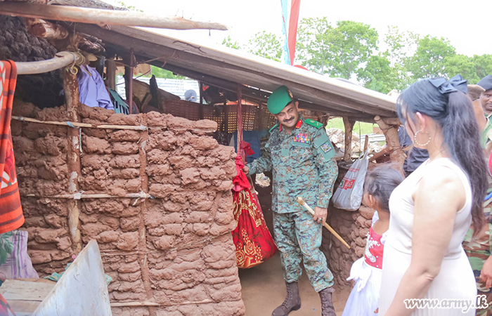 After warming the first house at Kebithigollawa, as the second project of the day, the Army Chief proceeded to warm one more new house, built by Army troops for one more needy widowed family living in Dematamalgama, Thanthirimale. This house was put up by 5 Sri Lanka National Guard (SLNG) troops under the supervision of the Colonel of the Regiment, SLNG and the Commanding Officer of the 5 SLNG. The same philanthropist, Mr Ajantha Vass Gunasekara has spent Rs 1.1 m towards the construction of this new house too through the coordination of Brigadier Anil Peiris.