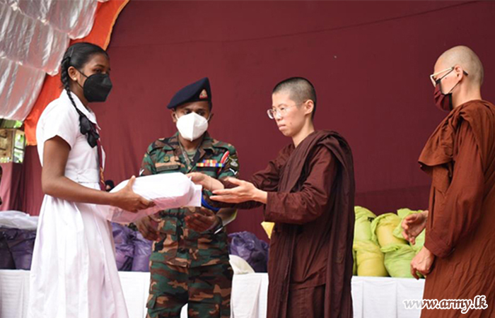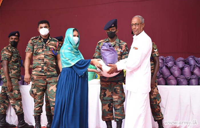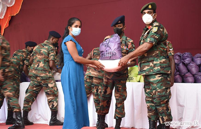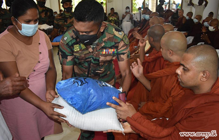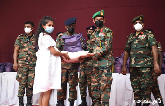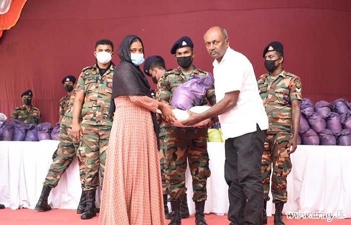 24 Division troops of the Security Force HQ-East, in a mega relief project with the patronage of Ven Agulugamuwe Ariyananda Thero, Incumbent at Na-Uyana Aranya Senasana, and the committee members of Na-Uyana Buddhist Laymen's Association coordinated the distribution of dry rations and stationeries among 2000 low-income group families in Ampara area on 20 August.