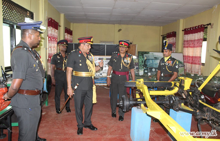 Major General Indu Samarakoon, Logistic Commander of the Army with the objective of receiving first-hand experience and updates on the functional aspects of the Sri Lanka Army Service Corps School, Corps of Engineer Services Training School, Forward Maintenance Area-North Central, Army Nursing School, and the Forward Maintenance Area North at Mullaittivu recently made separate visits to those locations.