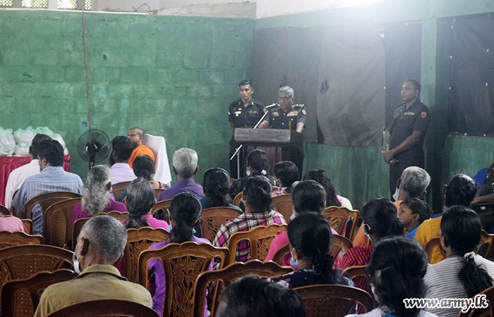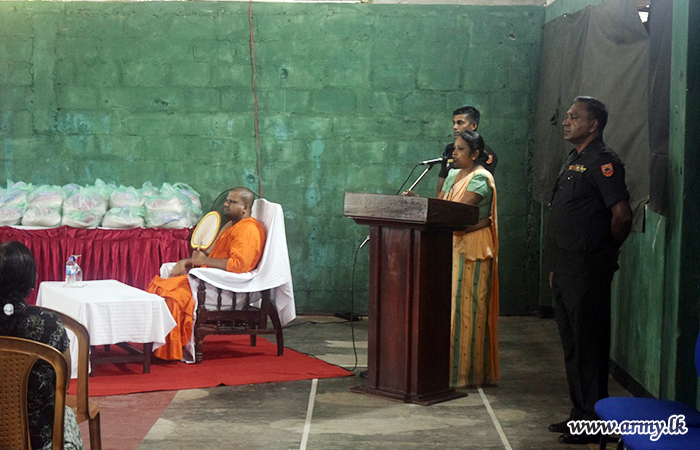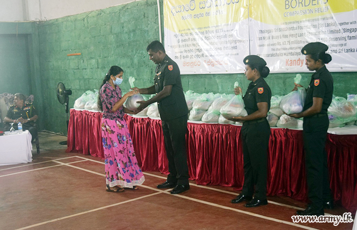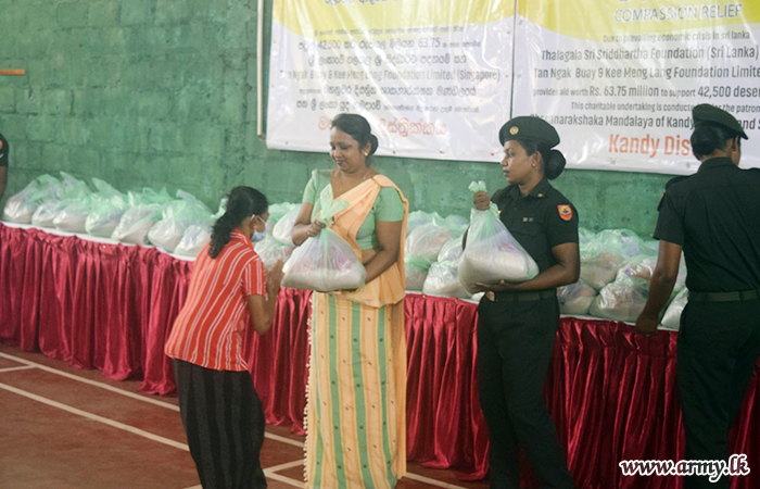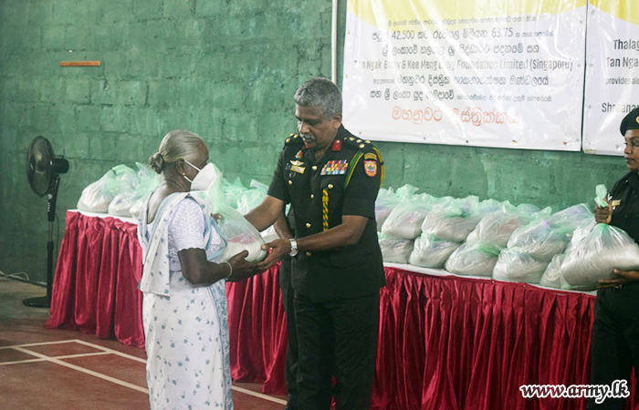 One more initiative of the Army in close collaboration with the Thalagala Sri Siddhartha Foundation of Ven. Thalagala Sri Sumanaratana Nayake Thero and Tan Ngak Buay & Kee Meng Lang Foundation of Singapore distributed a total of 130 dry ration packs among the poor, resident in the general area of Doluwa - Kandy on Thursday (25).