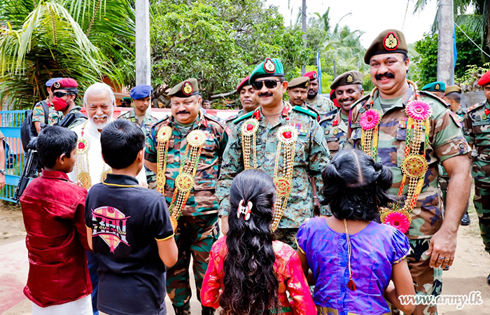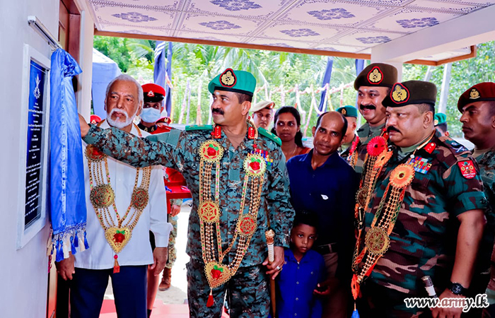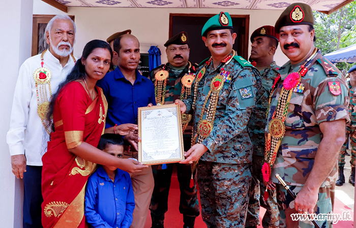 Manpower and technical expertise of the Army and the patronage of a donor enabled the 55 Division troops of the Security Force HQ-Jaffna to build a new house for a family of ex-combatants in the general area of Puloly, Jaffna and vested it with the beneficiaries in the presence of the Commander of the Army, Lieutenant General Vikum Liyanage who was in Jaffna to meet troops serving the peninsula.