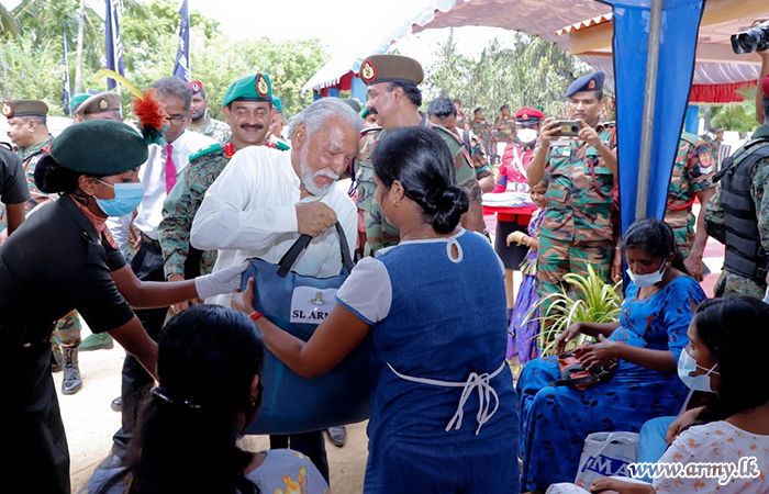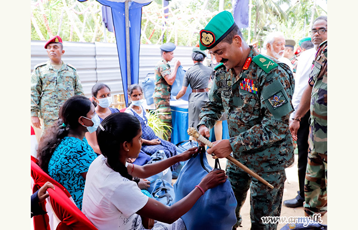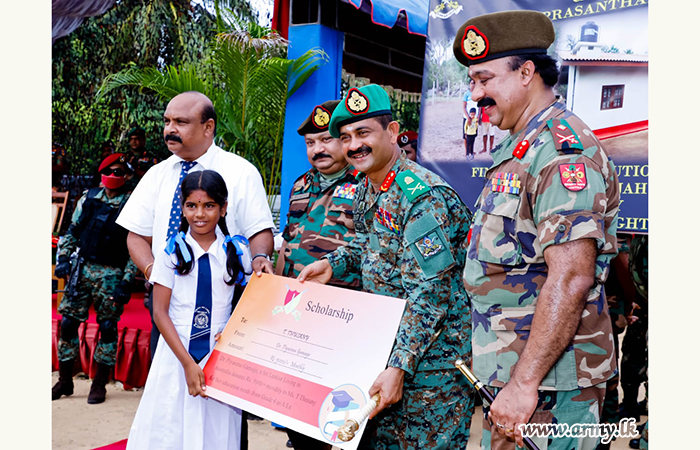 The Commander of the Army afterwards gave a cash donation to the three-member family and wished them good luck with their future endeavours. At the same location, the Army Chief on humanitarian grounds gave away a monthly scholarship of Rs 5000/= to three deserving students who did very well in the recent scholarship examination. The scholarship lasts until they reach the A/L examination and the sponsorship has been provided by Dr Piyasena Gamage, an expatriate in Australia through the Army.