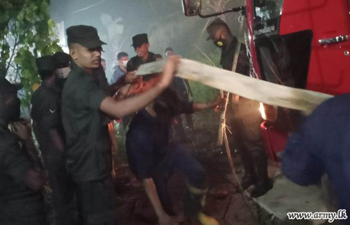 As per guidelines given by the Commander, Security Forces-West, Major General Deepal Pussella, troops got down a water bowser, 2 fire brigade trucks, and two helicopters from the Air Force for the task as the fires were fast spreading. Officials at the Disaster Management Centre (DMC) Gampaha and Divisional Secretariat Wattala also provided their maximum support to bring the fire under control.
