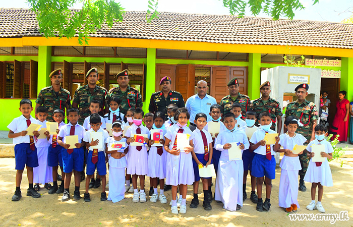 4 Sri Lanka Light Infantry troops under the guidance and directions of Colonel Sumal Wickramasekera, Commander, 532 Brigade organized the distribution project at the school premises.