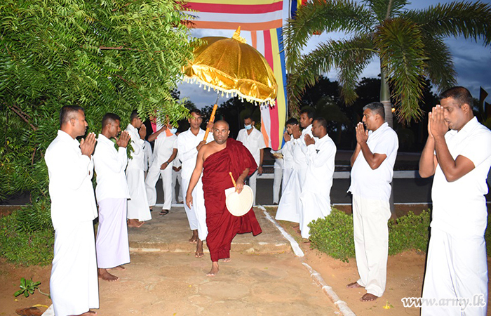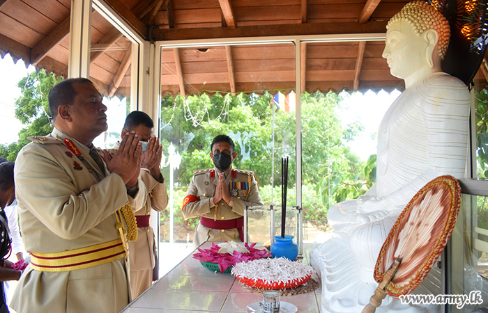 A “Bodhi Pooja” was held at the 52 Division temple in order to invoke blessings on the 52 Division and its troops before the General Officer Commanding, 52 Division, Major General Sanjeewa Frenando was saluted in a parade after he was greeted to a Guard Turnout at the entrance to the Division HQ.