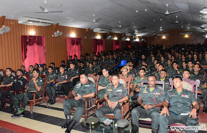 The 1 Corps Headquarters at Kilinochchi with the objective of enlightening all Army personnel about the dangers of narcotics and the importance of prevention from drugs organized a lecture for Officers and Other Ranks on Thursday (25) at the 1 Corps HQ premises.