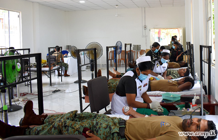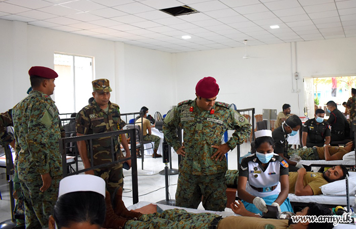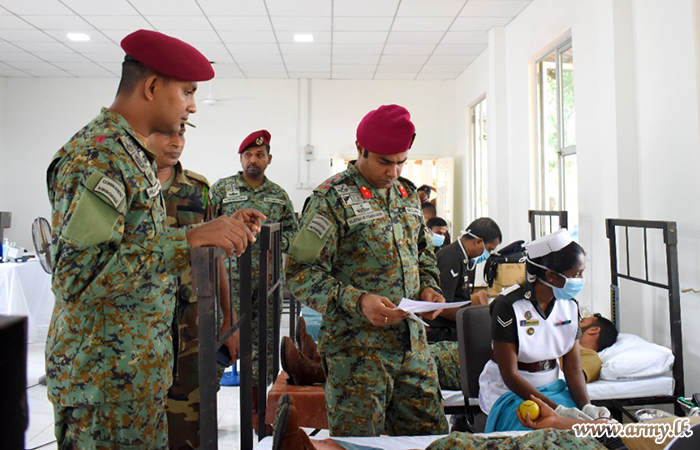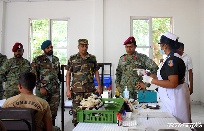 In accordance with guidelines given by Brigadier Vijitha Hettiarachchi, Commander, Commando Brigade, senior officers and other ranks voluntarily came forward to give their blood to the Blood Bank at Colombo Army Hospital.