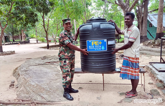 Through the sponsorship provided by an overseas-based philanthropist to the 241 Brigade HQ in Ampara, 16 Sri Lanka National Guard (SLNG) troops of the 241 Brigade provided 4 water storage tanks to most deserving families, resident in Piyasaragama village in Maha Oya on Thursday (25).