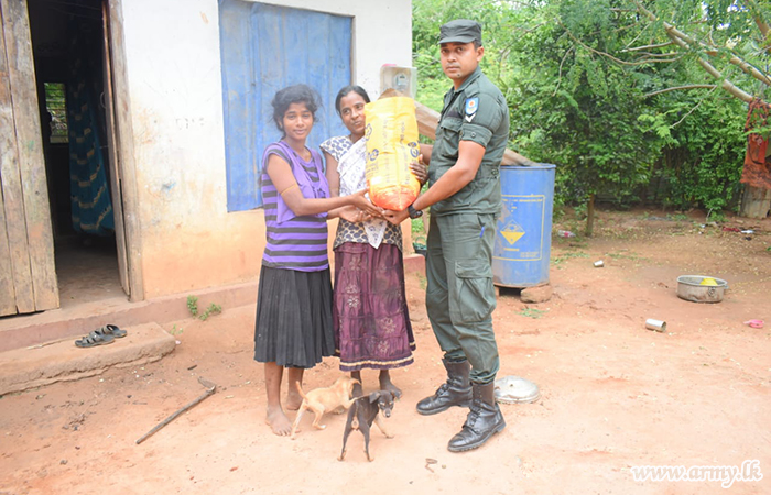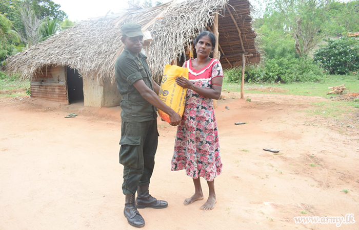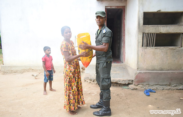 Troops of the 6 Gemunu Watch (GW) under command to the 681 Brigade of the 68 Division of the Security Force HQ- Mullaittivu on their own took an initiative and showed their generosity towards needy families in the Theravil Grama Niladhari sector by donating dry ration packs for five needy families on Wednesday (31).