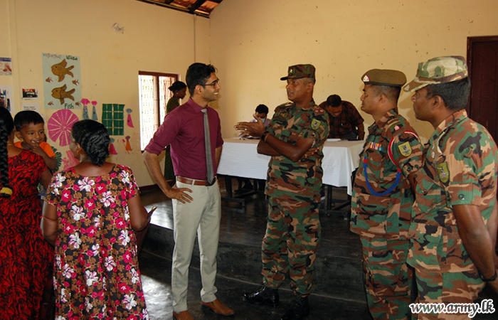 The humanitarian arrangement was staged on the directions of Major General Saliya Amunugama, General Officer Commanding, 24 Division. The Brigade Commander, 242 Brigade, Brigadier Sampath Fernando, together with Commanding Officer of the 8 SLNG, Major S.J Amadoru, several Officers and Other Ranks of 8 SLNG participated in the arrangement.